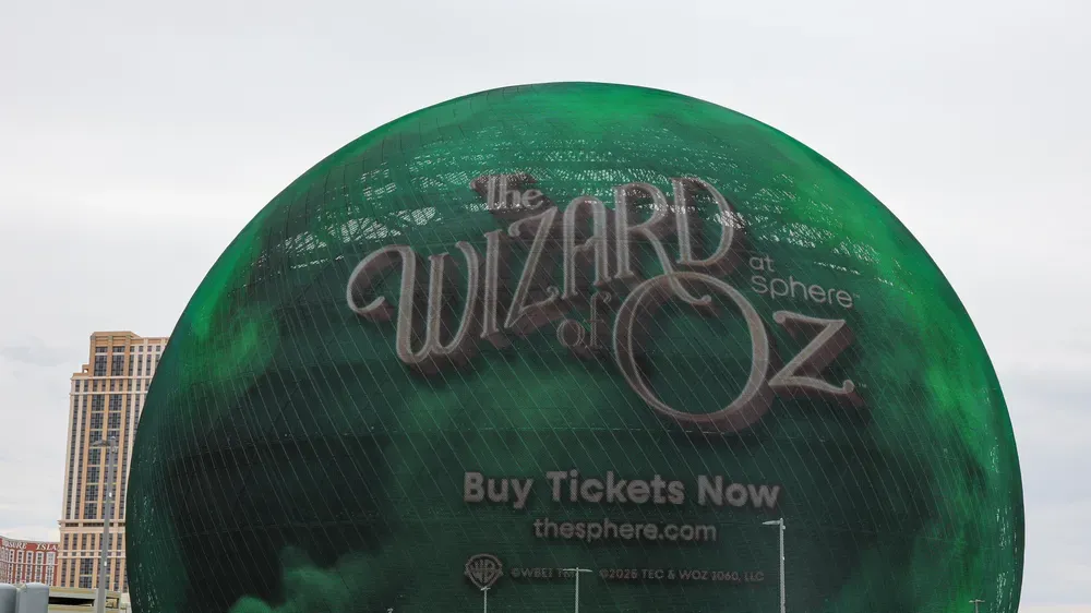 LAS VEGAS, NEVADA - AUGUST 28: Sphere lights up with an advertisement for "The Wizard of Oz at Sphere" ahead of the show's premiere on August 28, 2025 in Las Vegas, Nevada. Photo Credit: (Photo by Ethan Miller/Getty Images)