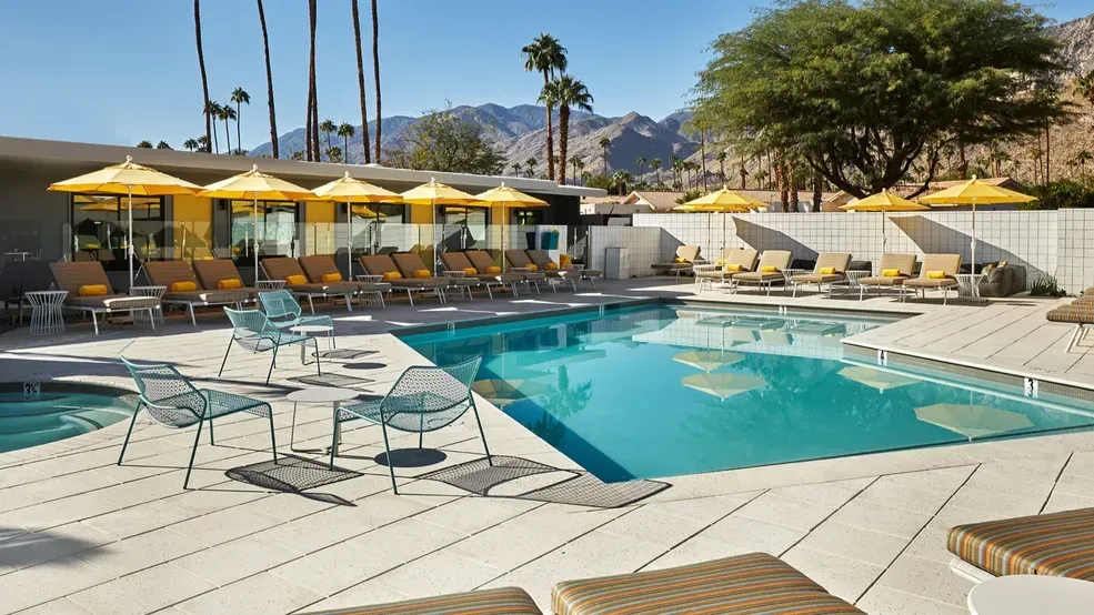 Luxurious details abound, from king-size pillow-top beds with premium cotton linens to spacious marble bathrooms featuring walk-in rain showers. Select rooms boast private patios for those seeking a more intimate retreat. The resort’s communal amenities are equally enticing: a heated and chilled pool, a 12-person spa, plush sun beds, outdoor fire pit, mist cooling system, and breathtaking views of the San Jacinto Mountains. With complimentary continental breakfast, poolside lunch, and 24-hour access to snacks and non-alcoholic drinks, guests can indulge in laid-back luxury from sunrise to sunset .